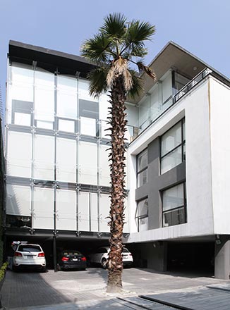Corporate office building developed in 3 levels and 1 parking basement with a land area of 8,719 SF and a leasable area of 15,392 SF, approximately.