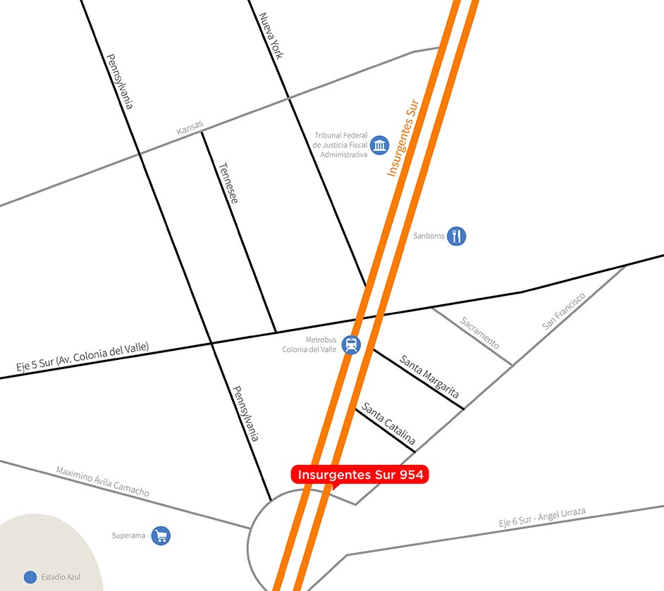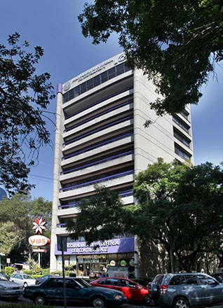 Corporate office building and commercial space on a full block front, designed by Architect Pedro Ramírez Vázquez, developed in 10 levels and 4 parking basements with a land area of 19,375 SF and a leasable area of 48,438 SF, approximately.