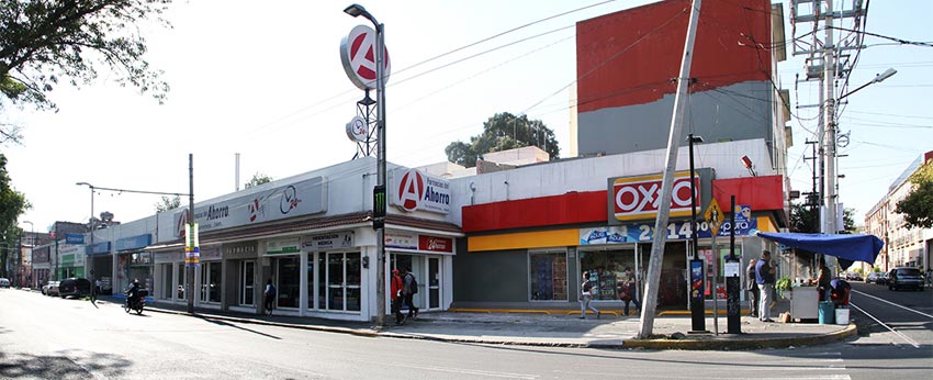 Commercial plaza on a block front developed in a single level with double-height premises and with a land area of 8,396 SF and a leasable area of 6,458 SF, approximately.