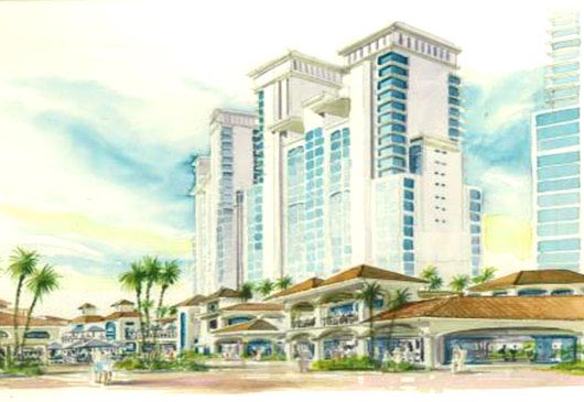 Mixed, commercial and residential developement on a 755ft beach front. 677 apartments built in 4, 28-level towers, 130 villas and a 86,111 SF shopping plaza. All of these on 888,023 SF of land area and 2,152,782 SF of construction.
