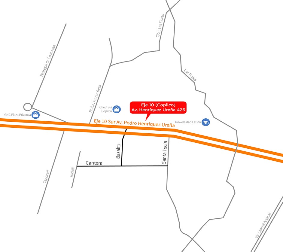 Commercial plaza developed in 3 double-height levels and 1 parking basement with a 470ft front on Eje 10 (Copilco Ave.) with a land area of 89,340 SF and a leasable area of 129,167 SF, approximately.
