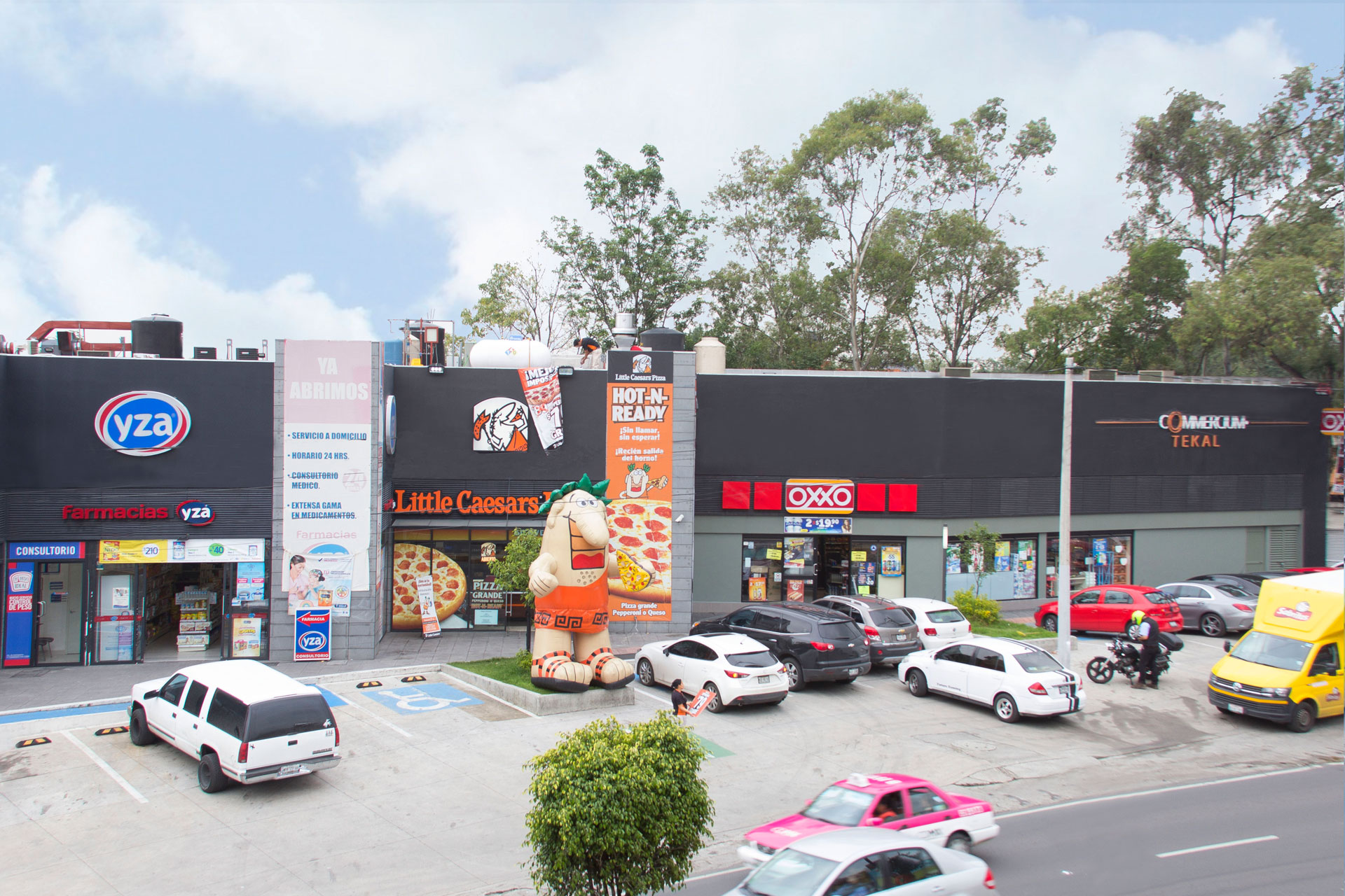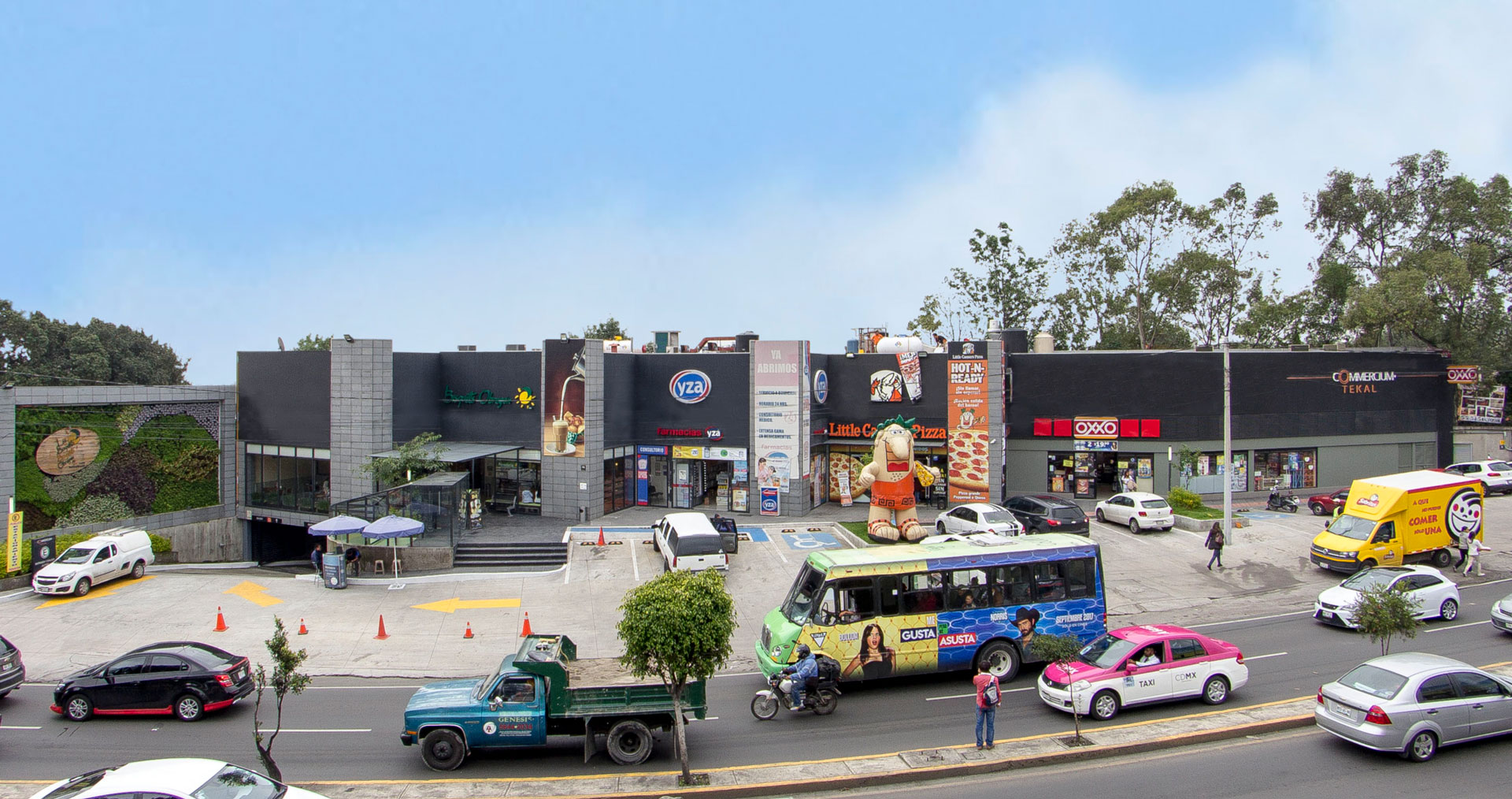 Plaza comercial desarrollado en 1 nivel a doble altura con una superficie de terreno de 1,600 m² y una superficie rentable de 800 m² aproximadamente.