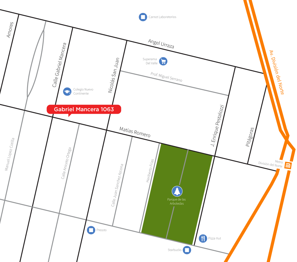 Gabriel Mancera # 1063, Col. Del Valle, Del. Benito Juarez, Ciudad de México