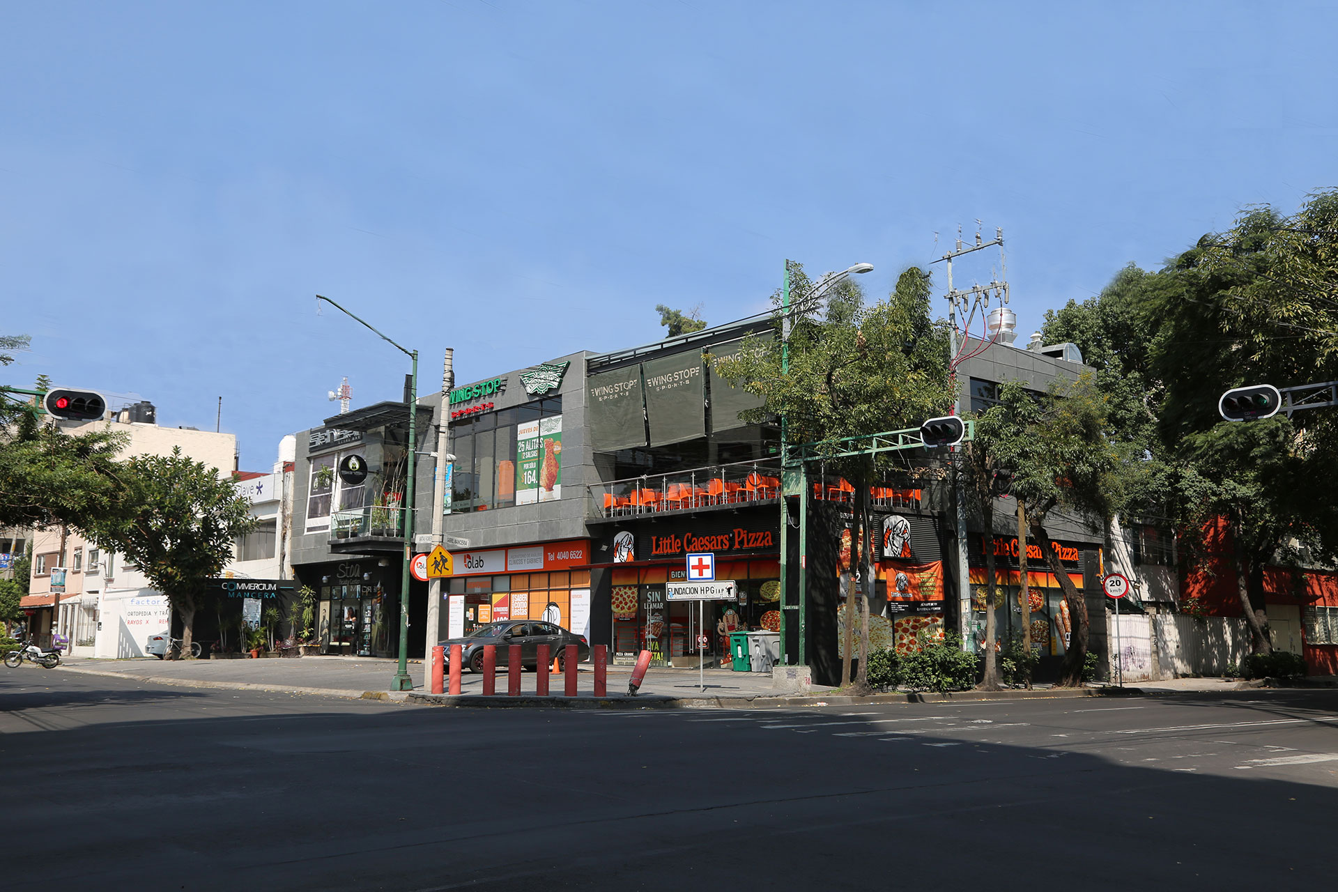 Plaza comercial ubicada en esquina, desarrollada en dos niveles. Con una superficie de terreno de 900 m² y una superficie rentable de 1,005 m²