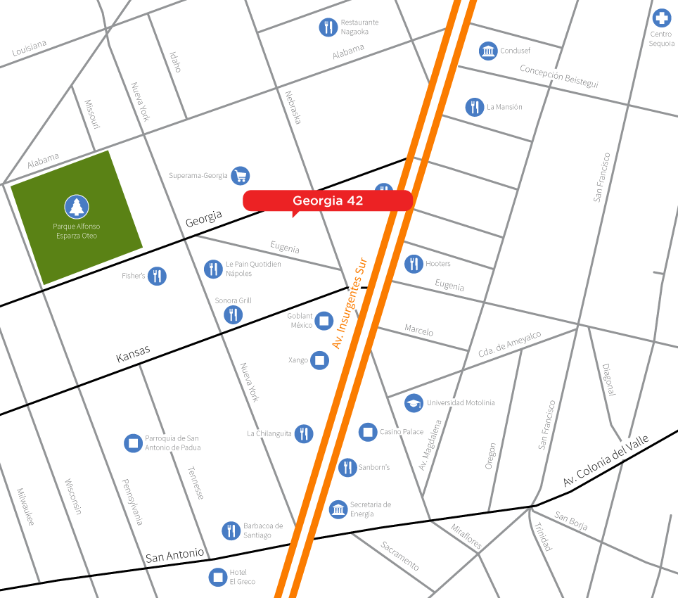 Georgia No. 42, Col. Ampliación Napoles, Del. Benito Juarez, Ciudad de México, CP 03840