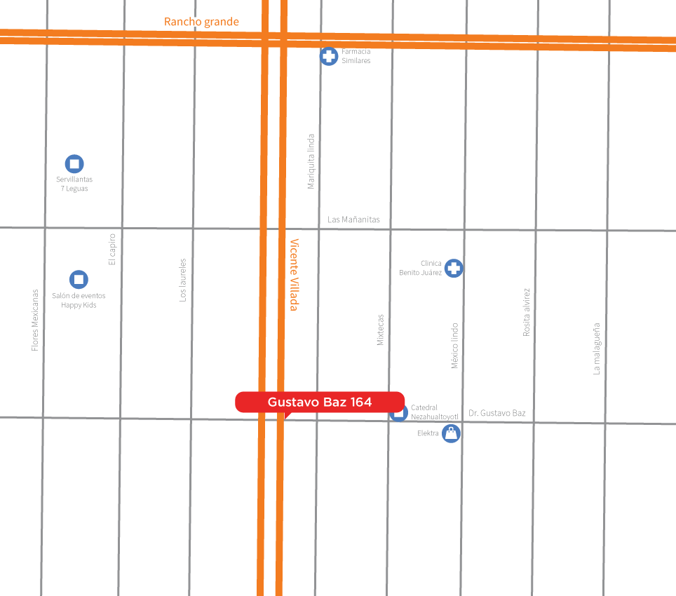 Gustavo Baz 164, Col. Aurora, Del. Nezahualcoyotl, Edo. De México